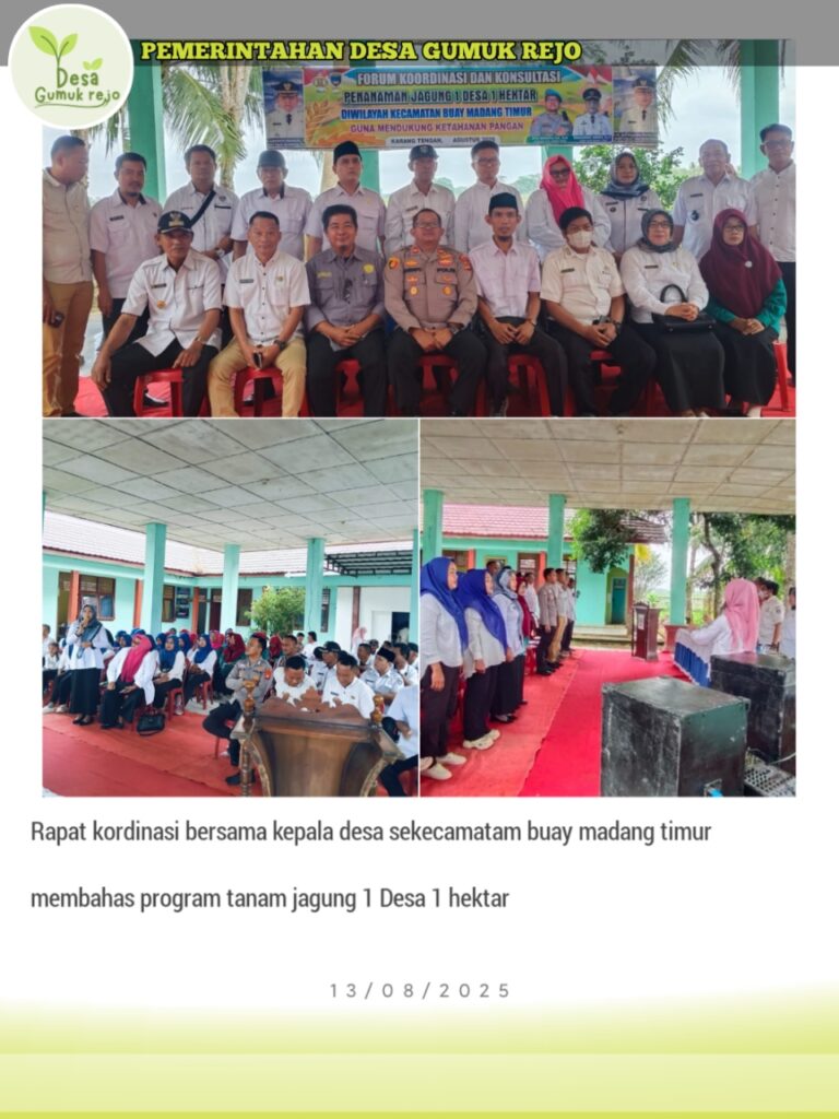 Pj Gumuk Rejo – Pemerintah Desa Gumuk Rejo turut hadir dalam rapat koordinasi bersama seluruh kepala desa se-Kecamatan Buay Madang