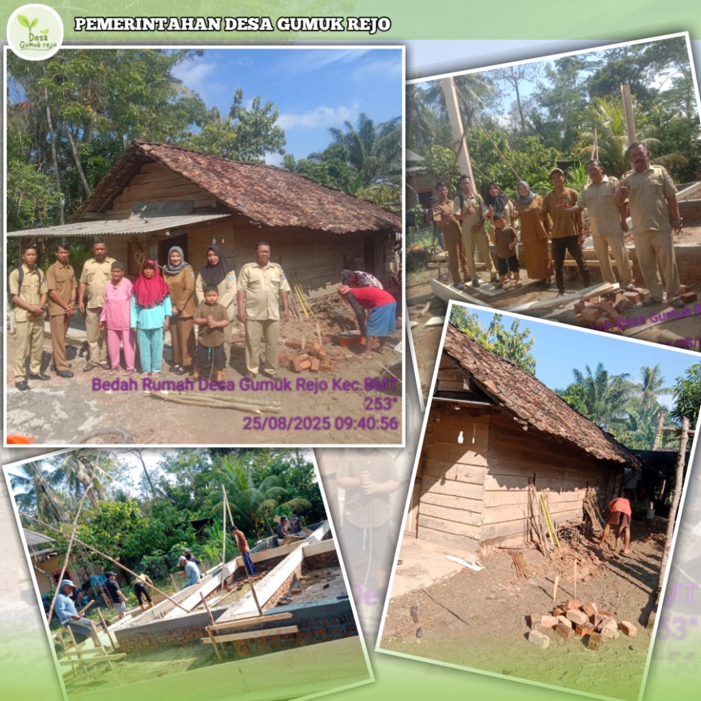 Gumuk Rejo, 25 Agustus 2025 – Pemerintah Desa Gumuk Rejo melaksanakan kegiatan bedah rumah untuk keluarga Bapak Feri Irawan dan